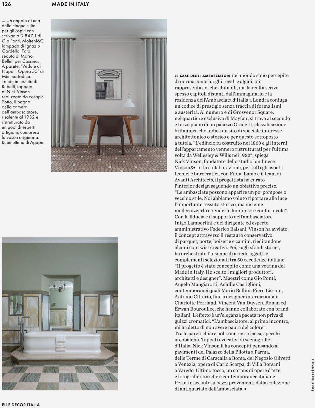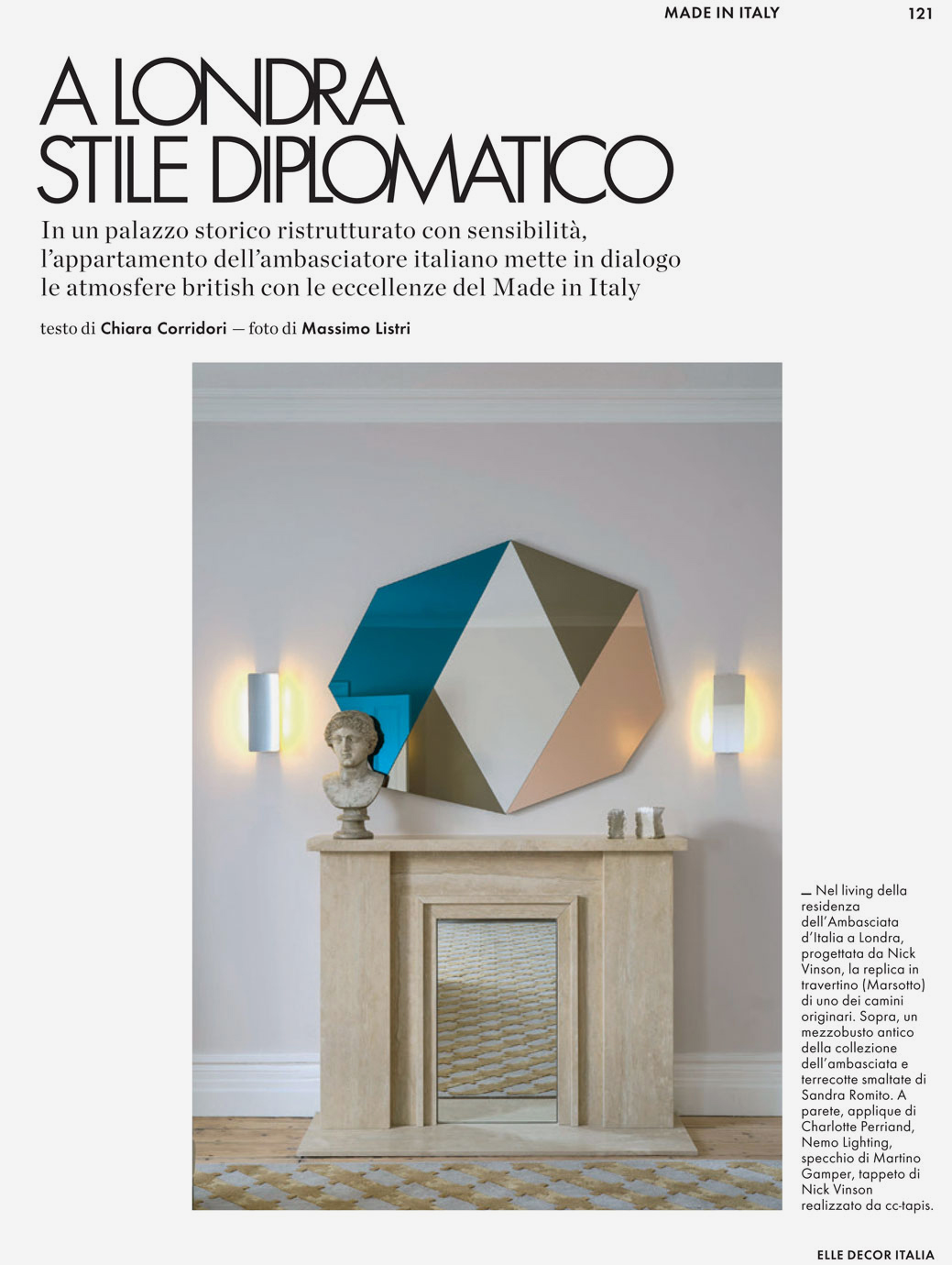 We’re delighted that our recent refurbishment of the Ambassador’s Residence at the Italian Embassy in Grosvenor Square, London has been featured in “Elle DECOR Italia”.